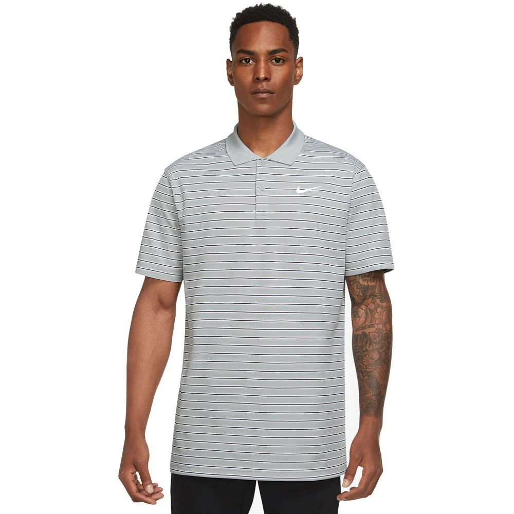 Nike Dri-Fit Victory Stripe Golf Shirt DH0829 | Light Smoke Grey/White 077