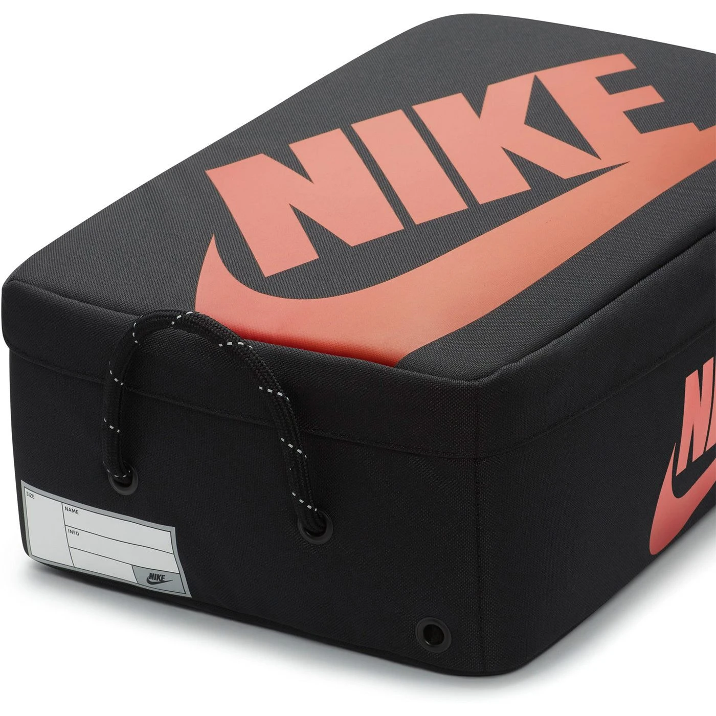 Keep your shoes clean as you transport them with style & ease. The Nike Shoebox Bag features a classic shoebox silhouette with full-zip closure for fast access. An eyelet in the bag helps with ventilation. Made with at least 50% recycled polyester.